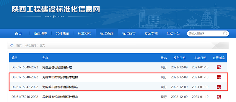 近日,由米兰体育彩票官网海綿城市技術公司聯合陝西省城鄉(xiang) 規劃設計研究院主編的《海綿城市雨水滲井技術規程》(DB61/T5048-2022)《海綿城市建設項目評價(jia) 標準》(DB61/T5047-2022)2項省級地方標準批準發布,目前已正式實施。下一步米兰体育彩票官网將全力加快在研省級標準及企業(ye) 標準報批發布進度切實發揮評價(jia) 指標體(ti) 係的“標尺”和“指揮棒”作用為(wei) 區...