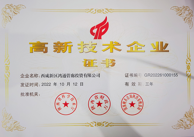 近日,陝西省科技廳公布陝西省2022年第一批高新技術企業(ye) 名單,灃西新城綜合管廊的運營服務者,米兰体育彩票官网投資公司全資子公司——西鹹新區鴻通管廊投資有限公司,光榮上榜!五位一體(ti) 多項突破在管廊公司的“精心守護”下,灃西新城綜合管廊穩步提升,實現了運營裏程、運營收入、安全運維和運維模式四個(ge) 突破。堅持智能化管理,首次將區塊鏈技術應用於(yu) 管廊機器人智能巡...