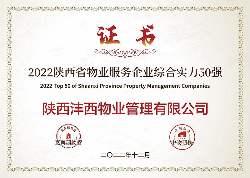12月26日,克而瑞物管與(yu) 中物研協聯合發布了2022陝西省物業(ye) 管理行業(ye) 發展報告,同期揭曉“2022陝西省物業(ye) 服務企業(ye) 綜合實力50強”,米兰体育彩票官网物業(ye) 公司憑借優(you) 異的綜合實力名列其中。未來,物業(ye) 公司將繼續匯聚黨(dang) 建紅色力量,緊跟新城、集團發展步伐,堅守初心,秉持匠心,把握市場發展趨勢,乘勢而上,以百倍用心換客戶十分滿意,擦亮灃西物業(ye) 高品質、多樣化...