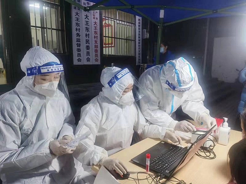 早上5點,天還未亮時,劉恒希顧不上吃早飯便啟程前往客省莊村,到達後他便與(yu) 同事開始了緊張而忙碌的核酸檢測秩序維護工作,在新一輪核酸檢測完成後,他又立刻投入到“敲門行動”中,挨家挨戶上門詢問村民核酸檢測情況、是否有生活困難等。劉一博將村民安全送至家中疫情防控工作開展以來,劉一博已進行下沉一線工作6輪次,日工作時長經常超過8小時。