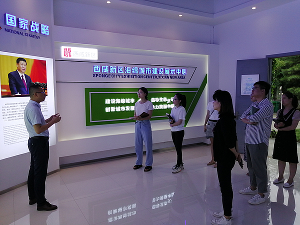 為(wei) 進一步幫助部門員工深入學習(xi) 灃西新城海綿城市規劃理念、建設發展模式,7月16日下午,集團財務部組織部門員工赴西鹹新區海綿城市建設展示中心實地參觀學習(xi) 。本次專(zhuan) 題培訓特別邀請海綿城市技術中心姬國強同誌主講。