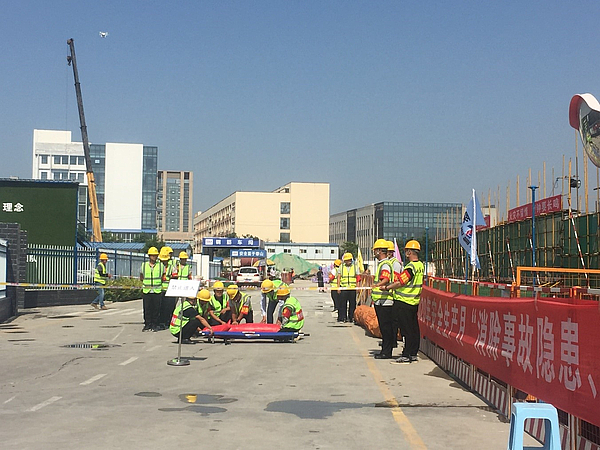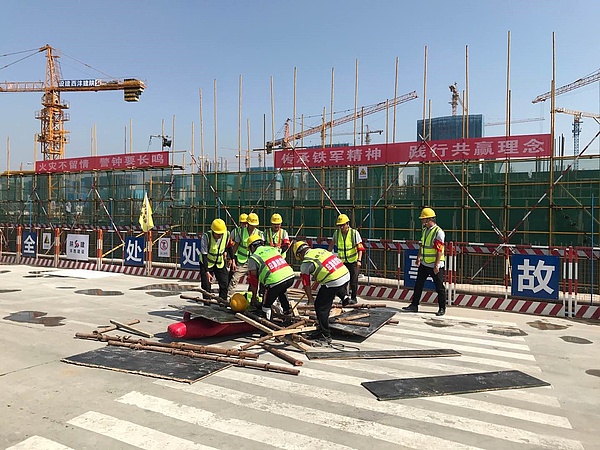 本次演練針對高支模坍塌事故和有限空間作業(ye) 事故開展應急救援,現場分別模擬高支模架體(ti) 突然發生坍塌,兩(liang) 名作業(ye) 人員被鋼管、模板埋壓的場景和由於(yu) 作業(ye) 人員違章操作,在未經審批的情況下,下井作業(ye) 突然暈倒的場景,事故發生後,現場立即啟動應急預案,在應急指揮部統一調度下,各應急救援組各司其職,分頭行動開展應急救援工作。經過緊張救援,遇險人員被救出,並送往醫院進一步治療。現場救援人員隨即全部撤離,各項演練任務順利完成。