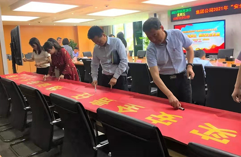 會(hui) 議傳(chuan) 達學習(xi) 了習(xi) 近平總書(shu) 記關(guan) 於(yu) 安全生產(chan) 的重要論述,安排部署了集團2021年“安全生產(chan) 月”和“安全生產(chan) 萬(wan) 裏行”活動各項工作,各部門、各子公司負責人在安全宣傳(chuan) 橫幅上簽名。