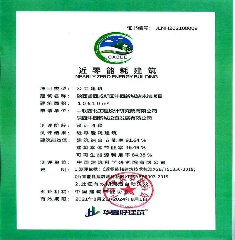 近日,西鹹新區灃西新城遊泳館項目獲設計階段“近零能耗建築”證書(shu) ,標誌著全國首個(ge) AAA級裝配式近零能耗遊泳館在灃西新城誕生這也是灃西新城踐行綠色發展理念積極探索“碳達峰碳中和”實現路徑又一力作。