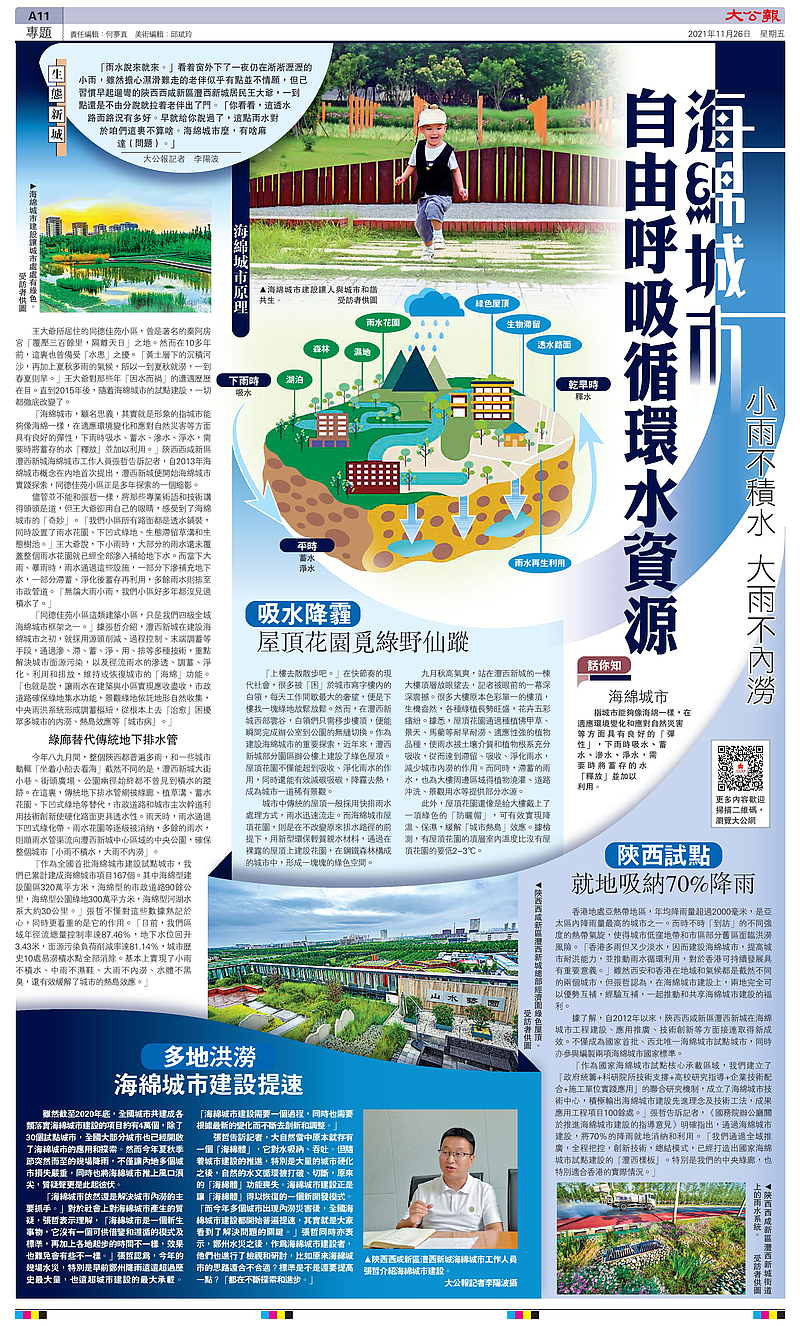“作為(wei) 國家海綿城市試點核心承載區域,我們(men) 建立了‘政府統籌+科研院所技術支撐+高校研究指導+企業(ye) 技術配合+施工單位實踐應用’的聯合研究機製,成立了海綿城市技術中心,積極輸出海綿城市建設先進理念及技術工法,成果應用工程項目100餘(yu) 處。”張哲告訴記者,《國務院辦公廳關(guan) 於(yu) 推進海綿城市建設的指導意見》明確指出,通過海綿城市建設,將70%的降雨就地消納和利用。“我們(men) 通過全域推廣,全程把控,創新技術,總結模式,已經打造出國家海綿城市試點建設的‘灃西樣板’。特別是我們(men) 的中心綠廊,也特別適合香港的實際情況。”