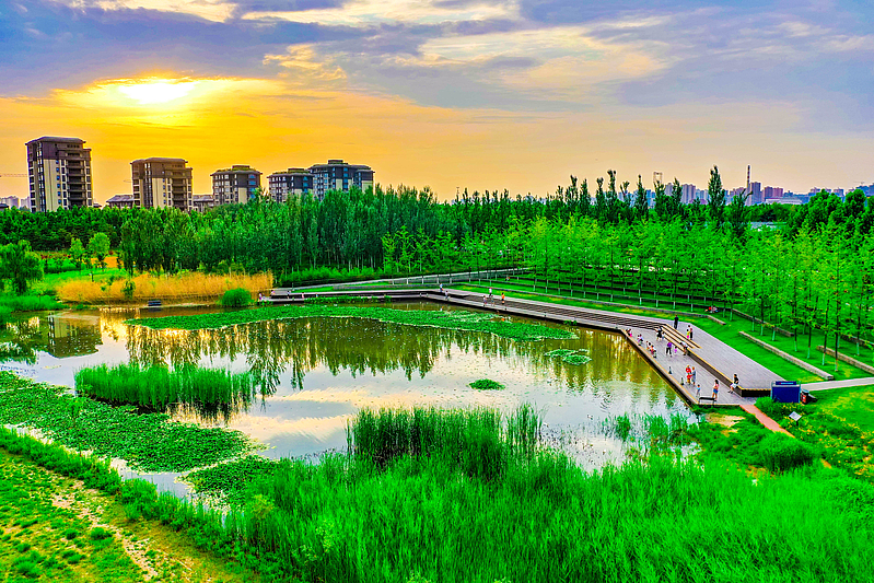 今年八九月間,整個(ge) 陝西都普遍多雨,和一些城市動輒“坐著小船去看海”截然不同的是,灃西新城大街小巷、街頭廣場、公園幽徑始終都不曾見到積水的蹤跡。在這裏,傳(chuan) 統地下排水管網被綠廊、植草溝、蓄水花園、下凹式綠地等替代,市政道路和城市主次幹道利用技術創新使硬化路麵更具透水性。雨天時,雨水通過下凹式綠化帶、雨水花園等逐級被消納,多餘(yu) 的雨水,則順雨水管渠流向灃西新城中心區域的中央公園,確保整個(ge) 城市“小雨不積水,大雨不內(nei) 澇”。