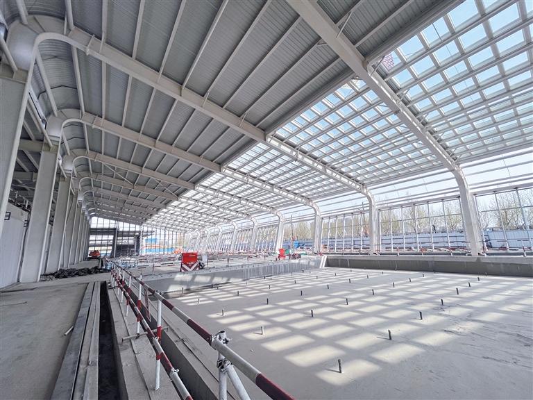 在灃西新城遊泳館項目現場,記者看到,該項目已完成主體(ti) 建設,工人們(men) 正在進行室外雨汙水管網施工、室內(nei) 裝飾裝修等工作。一座充滿科技智慧的“綠色”遊泳館將在不久後呈現在人們(men) 眼前。