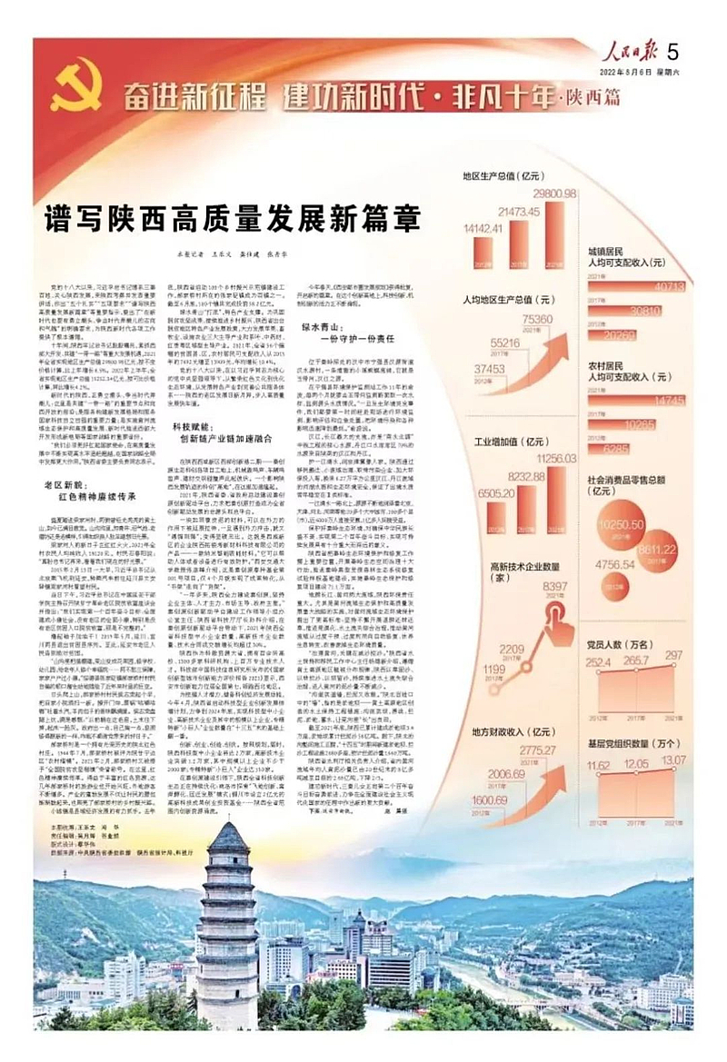8月6日,人民日報刊發主題報道《奮進新征程 建功新時代·非凡十年》。聚焦陝西,緊抓西部大開發、共建“一帶一路”等重大發展機遇,在高質量發展中不斷實現高水平追趕超越。其中報道了西鹹新區灃西新城作為(wei) 秦創原創新驅動平台總窗口,促進各類創新要素高效聚合為(wei) 陝西高質量發展集聚強勁動能,內(nei) 容節選如下。