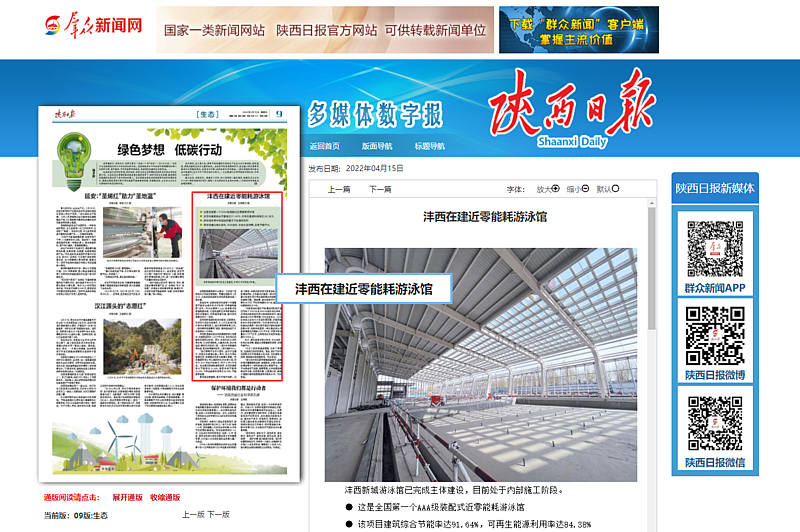 你見過這樣的遊泳館嗎?今年9月,這座全國首個(ge) 認證的AAA級裝配式近零能耗遊泳館,將在灃西新城投入使用,成為(wei) 西鹹新區灃西新城踐行綠色發展理念,積極探索碳達峰、碳中和實現路徑的又一突破。2021年8月,經中國建築節能協會(hui) 測評,該項目建築綜合節能率達91.64%,建築本體(ti) 節能率46.49%,可再生能源利用率達84.38%,節能效果顯著,獲批“近...