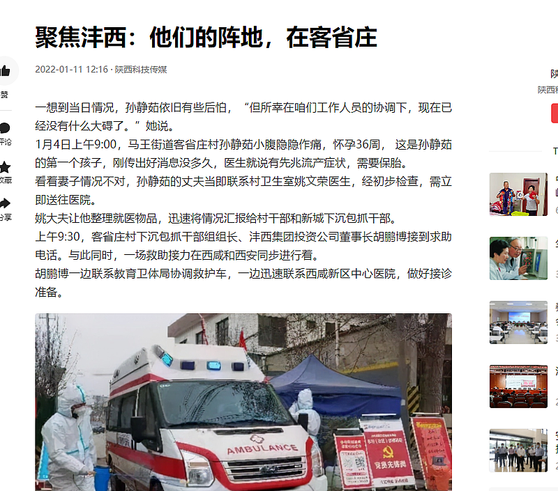 1月4日上午9:00,馬王街道客省莊村孫靜茹小腹隱隱作痛,懷孕36周,這是孫靜茹的第一個(ge) 孩子,剛傳(chuan) 出好消息沒多久,醫生就說有先兆流產(chan) 症狀,需要保胎。上午9:30,客省莊村下沉包抓幹部組組長、米兰体育彩票官网投資公司董事長胡鵬博接到求助電話。當天,另一場與(yu) “死神”的較量,也在客省莊村發生著。