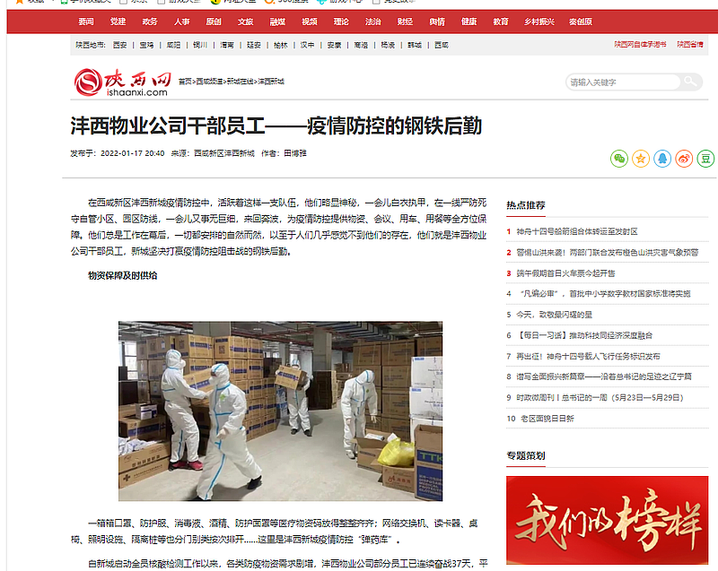 在西鹹新區灃西新城疫情防控中,活躍著這樣一支隊伍,他們(men) 略顯神秘,一會(hui) 兒(er) 白衣執甲,在一線嚴(yan) 防死守自管小區、園區防線,一會(hui) 兒(er) 又事無巨細,來回奔波,為(wei) 疫情防控提供物資、會(hui) 議、用車、用餐等全方位保障。他們(men) 總是工作在幕後,一切都安排的自然而然,以至於(yu) 人們(men) 幾乎感覺不到他們(men) 的存在,他們(men) 就是灃西物業(ye) 公司幹部員工,新城堅決(jue) 打贏疫情防控阻擊戰的鋼鐵後勤。